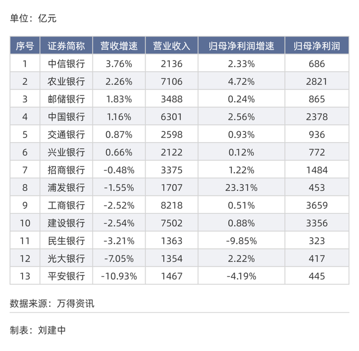 表1: 2024年A股千亿银行的营收、净利润等情况