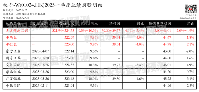 快手-W:用户增长强劲,AI赋能增效,预测Q1营收321.94~324.35亿元,同比增长9.5%~10.3%