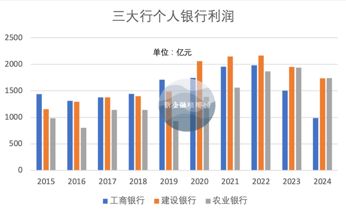 从个人银行利润来看,去年工行、建行、农行分别为987亿元、1735亿元、1740亿元,盈利占比分别为23.40%、45.14%、54.50%,农行在规模和占比上均实现了领先。
