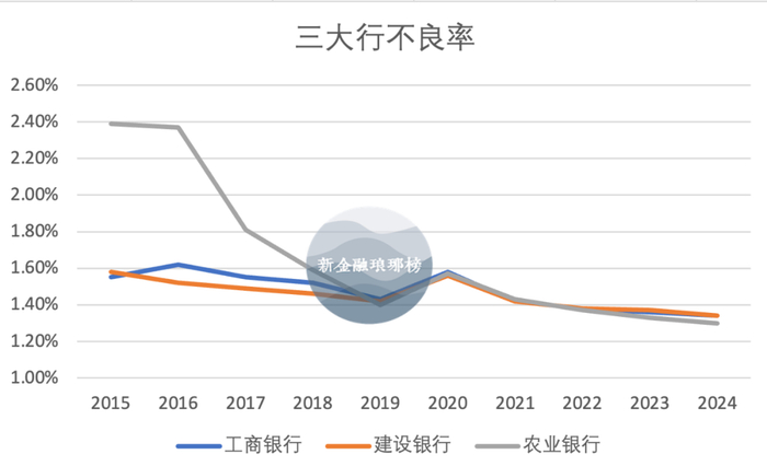 由于历史原因,农行资产质量曾长期在大行里面垫底,这一格局在2019年开始逆转,2022年以来农行不良贷款率已经连续三年位居三大行最低。