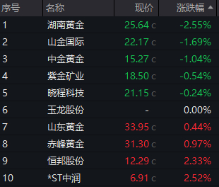 部分黄金股4月22日股价走势