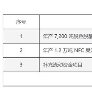 根据前述预案,安德利2024年度以简易程序向特定对象发行A股股票募集的资金将用于公司年产7200吨脱色脱酸浓缩果汁生产线项目、年产1.2万吨NFC果汁项目。