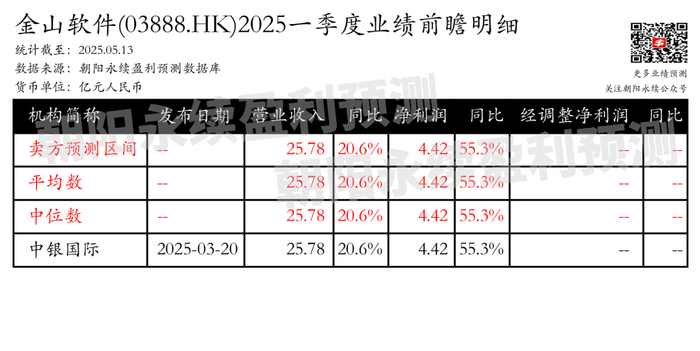 金山软件:预计5月28日公布一季报,预测一季度营业收入25.78亿元,同比变动20.6%