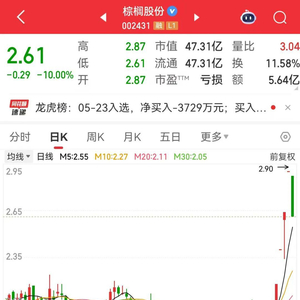 今日,连续斩获4个涨停板的牛股棕榈股份突发跌停,收盘仍有26.7万手封单。公司昨日晚间发布股票交易异常波动公告,表明除已披露的信息外,公司不存在应披露而未披露的重大事项,请广大投资者注意风险。