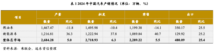 近年来,全国新能源汽车产销量持续提升,市场渗透率触及历年新高。根据中国汽车流通协会乘用车市场信息联席分会(以下简称“乘联会”)统计,2024年,全国整车产量、批发和零售销量分别为2,684.28万辆、2,718.93万辆和2,289.22万辆,同比增长5.0%、6.3%和5.5%,其中国内新能源汽车企业实现产量1,216.81万辆,批发销量1,222.94万辆,零售销量1,089.84万辆,同比分别增长36.8%、37.8%和40.7%;同期新能源汽车出口量达到129.92万辆,同比增长25.2%。国内燃油车市场同步萎缩,全年产量、批发销量和零售销量分别为1,467.47万辆、1,495.98万辆和1,199.38万辆,同比分别下降11.8%、10.4%、14.1%。市场渗透率方面,2024年,全国整车零售销量2,289.22万辆,新能源汽车市场渗透率达到47.6%,较上年增加6.9个百分点。