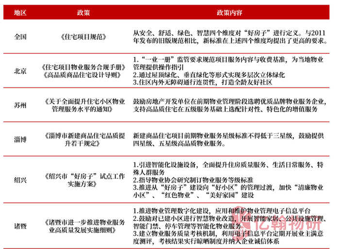 “好房子”的建设对物业服务提出了更高要求。部分“好房子”设计指引中明确提出要配套物业服务标准提升,例如滨州市出台的《高品质住宅开发建设品质提升实施意见》要求:“提高物业服务规范化、专业化服务水平,探索制定与高品质住宅相适应的物业服务标准”;《山东省好房子建设标准指引》则要求物业规范化、标准化建设住宅小区水电燃热的配套设施。结合“好房子”的需求,各城市陆续出台高品质物业认定标准和服务规范,涉及物业服务范围、准入门槛、物业费收取和智慧物业等多方面。经省、市住建部门认定的高品质住宅项目物业服务收费实行市场调节价,从而推动实现质价相符、优质优价。