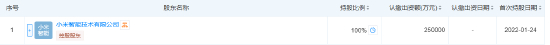 天眼查显示,小米景曦科技有限公司成立于2022年01月18日,由小米智能技术有限公司100%持股。