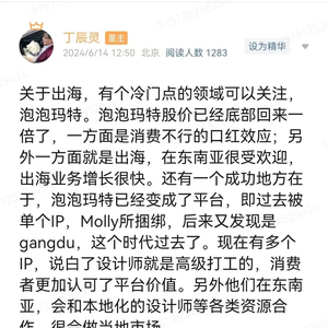 当然灵哥并不是说所有买labubu,买潮玩的都是缺爱,大部分在合理价格买着玩的是正常的,那是一种好玩,小确幸和圈层的社交货币,无可厚非。