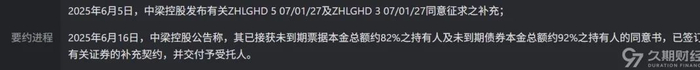中梁控股发布公告,ZHLGHD 5 07/01/27及ZHLGHD 3 07/01/27同意征求已获通过。公司已接获ZHLGHD 5 07/01/27本金总额约82%之持有人及ZHLGHD 3 07/01/27本金总额约92%之持有人的同意书,并已签订有关证券的补充契约,交付予受托人。公司预期在合理切实可行的情况下尽快及于6月30日前支付现金同意费。