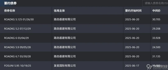 公司公告及新闻方面,路劲(01098.HK)对ROADKG 6.7 03/30/28等5只高级票据发起同意征求;中梁控股(02772.HK)两只美元债同意征求已获通过;新城控股(601155.SH)人民币60亿元小公募项目状态更新至“已受理”;万科企业(02202.HK)已完成“20万科06”的赎回工作;旭辉控股集团(00884.HK)旗下7只公司债券将召开线上债权人会议,审议债券重组的议案,本金额约100.6亿元;花样年控股(01777.HK)重组支持协议的最后截止日期进一步延长至6月25日;荣万家(02146.HK)与荣盛发展订立2025年债务抵偿框架协议,总代价约为人民币10.7亿元;新世界发展(00017.HK)仍在与债权人就现有贷款的再融资进行积极磋商,据媒体报导,新世界发展875亿港元贷款再融资接近完成;金科股份(000656.SZ)重整产业投资人及财务投资人合计已累计支付约19.43亿元投资款。