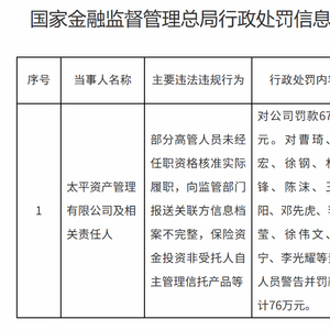 【导读】金融监管总局对太平资产罚款678万元,多名责任人被警告、罚款