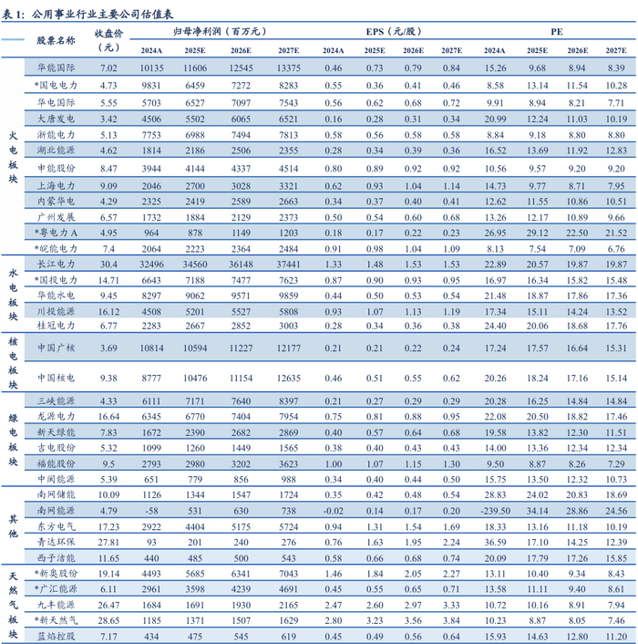 截至7月11日收盘,本周电力板块主要公司涨跌幅前三名分别为:桂冠电力(5.45%)、粤电力A(4.87%)、吉电股份(3.50%),主要公司涨跌幅后三名分别为:浙能电力(-8.06%)、华能国际(-5.14%)、国电电力(-4.44%);本周燃气板块主要公司涨跌幅前三名分别为:大众公用(6.06%)、中泰股份(4.20%)、国新能源(3.64%),主要公司涨跌幅后三名分别为:新奥股份(-2.50%)、新天然气(-0.28%)、天壕能源(0.20%)。