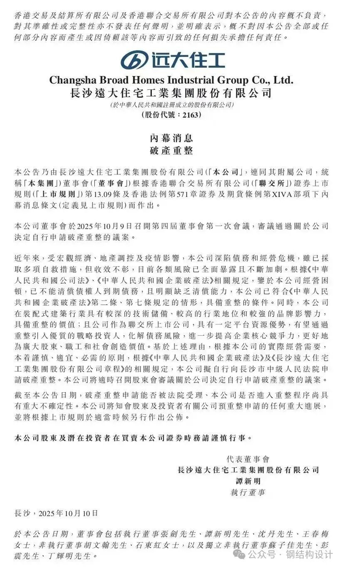 远大住工破产重整——2025建筑产业链“微光”生存缩影