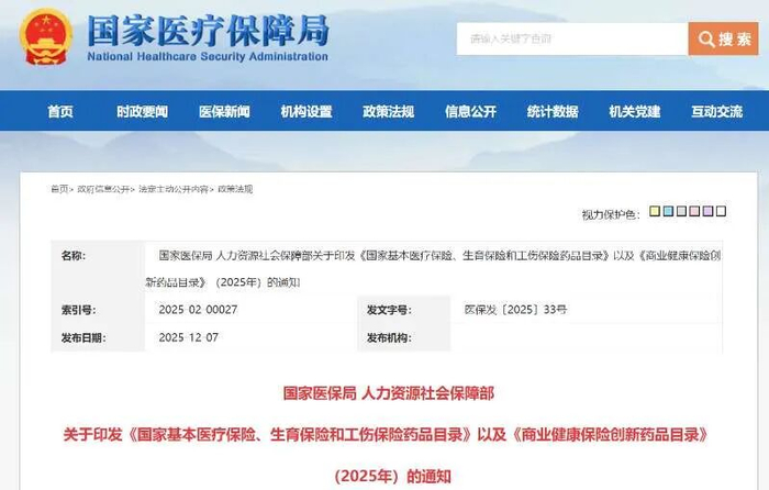2025年12月7日,中国医疗保障体系完成了一次历史性的制度重构。新版《国家基本医疗保险药品目录》与史上首份《商业健康保险创新药品目录》同步发布,标志着“双目录”支付新时代的到来。