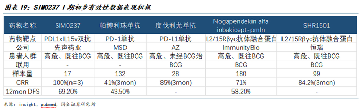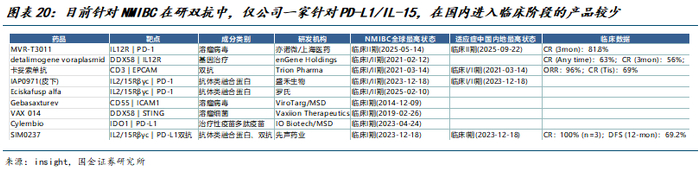 目前在研双抗数量较少,SIM0237为目前唯一在研的PD-L1/IL-15,疗效表现优异。根据insight数据,目前全球针对NMIBC在研的双抗数量较少,国内进入临床阶段仅4家,SIM0237为唯一一款PD-L1/IL-15单抗,初步临床数据显示较其他双抗具有更优疗效潜力。