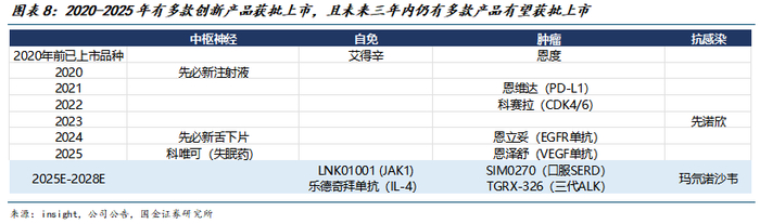 创新转型验证一:多款自研、引进的创新药管线近五年陆续获批上市