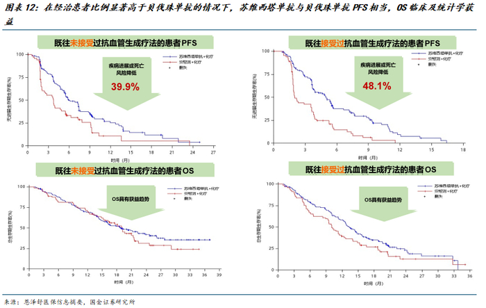 苏维西塔单抗(恩泽舒)于2025年6月在国内获批,用于联合紫杉醇、多柔比星脂质体或拓扑替康用于铂耐药后接受过不超过1种系统治疗的成人复发性卵巢癌、输卵管癌或原发性腹膜癌的治疗。同为VEGF靶点药物,苏维西塔单抗与贝伐珠单抗结合位点不同,结合活性更强,是铂耐药卵巢癌研究中唯一有明确OS获益的抗血管生成药物,苏维西塔单抗与VEGF受体结合不受VEGF165-G88A/Q89A突变影响(而该结合位点突变后,贝伐珠单抗无法结合,或可导致经治患者后续疗效不佳)。III期研究显示,对于贝伐珠单抗经治患者,使用苏维西塔单抗仍可显著获益。在一项纳入421例患者的铂耐药卵巢癌患者中开展的随机、双盲、多中心、III期试验显示,苏维西塔单抗联合化疗组mPFS为5.49个月,相比安慰剂组延长2.76个月,疾病进展或死亡风险降低54%(HR 0.46,p<0.0001);OS为15.31个月(HR=0.77,P=0.0304)。基于铂耐药卵巢癌患者迫切的治疗需求和苏维西塔单抗充分的临床证据,未上市前即获得权威指南A级强关注。苏维西塔单抗目前正式确认进入2025年医保目录,预计2026年正式执行医保后有望快速放量。