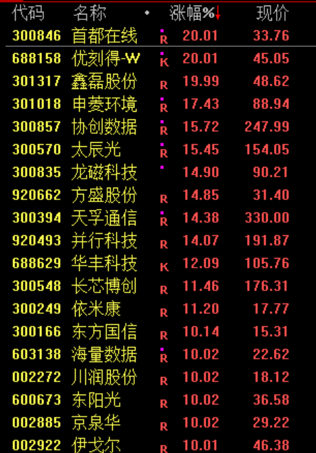 算力产业链集体走强,数据中心方向,优刻得、首都在线均20cm涨停。