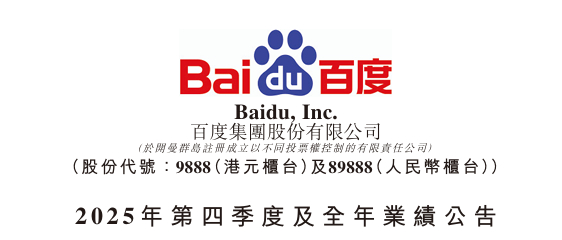 百度集团(09888.HK,BIDU)于周四(2月26日)公布了2025年第四季度及全年业绩公告。