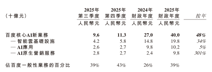 (即包括AI云端基建、AI原生营销服务及AI应用)、传统业务(即传统搜寻和信息流广告)及其他业务。