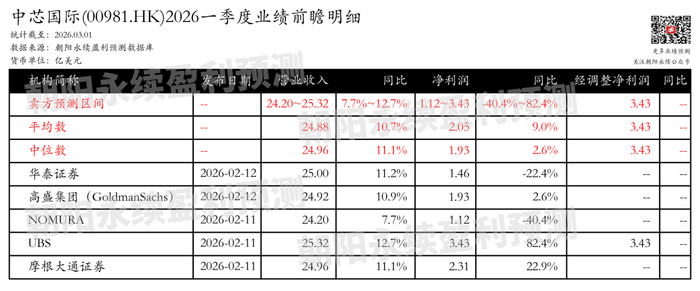截至2026年03月01日,根据朝阳永续季度业绩前瞻数据: