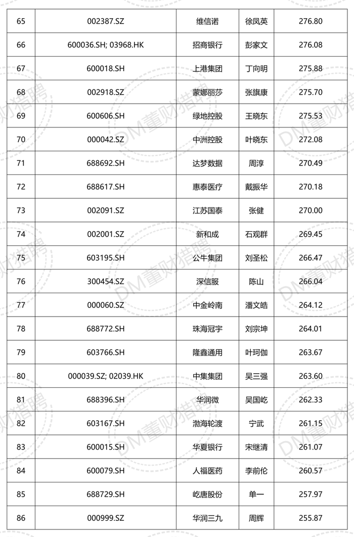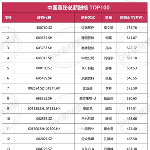 登上该榜单的董秘,其年度薪酬全部突破200万元大关,薪酬最高的迈瑞医疗董秘李文楣达到 738.76 万元;而位列榜单第一百位的扬农化工董秘李常青,其薪酬也达到了247.00万元,这一数字远超市场普遍水平。