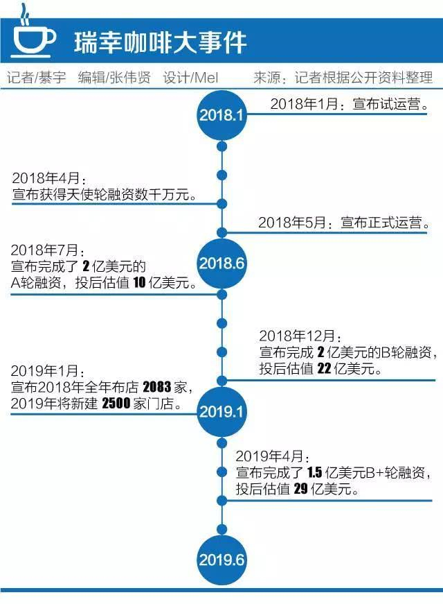 快节奏的融资、大幅度的扩张,瑞幸咖啡的“高歌猛进”也让公司估值快速上升,从2018年7月A轮投后估值10亿美元,到本轮投后估值29亿美元,9个月时间增长了近两倍。