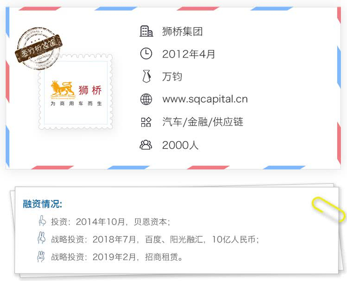 瞄准商用车领域的痛点,成立于2012年的狮桥集团从金融切入,经过7年的发展,已成为服务商用车全生命周期的综合平台,以技术和数据为基础,服务司机车主、金融机构、车企经销商、物流货主等合作伙伴。