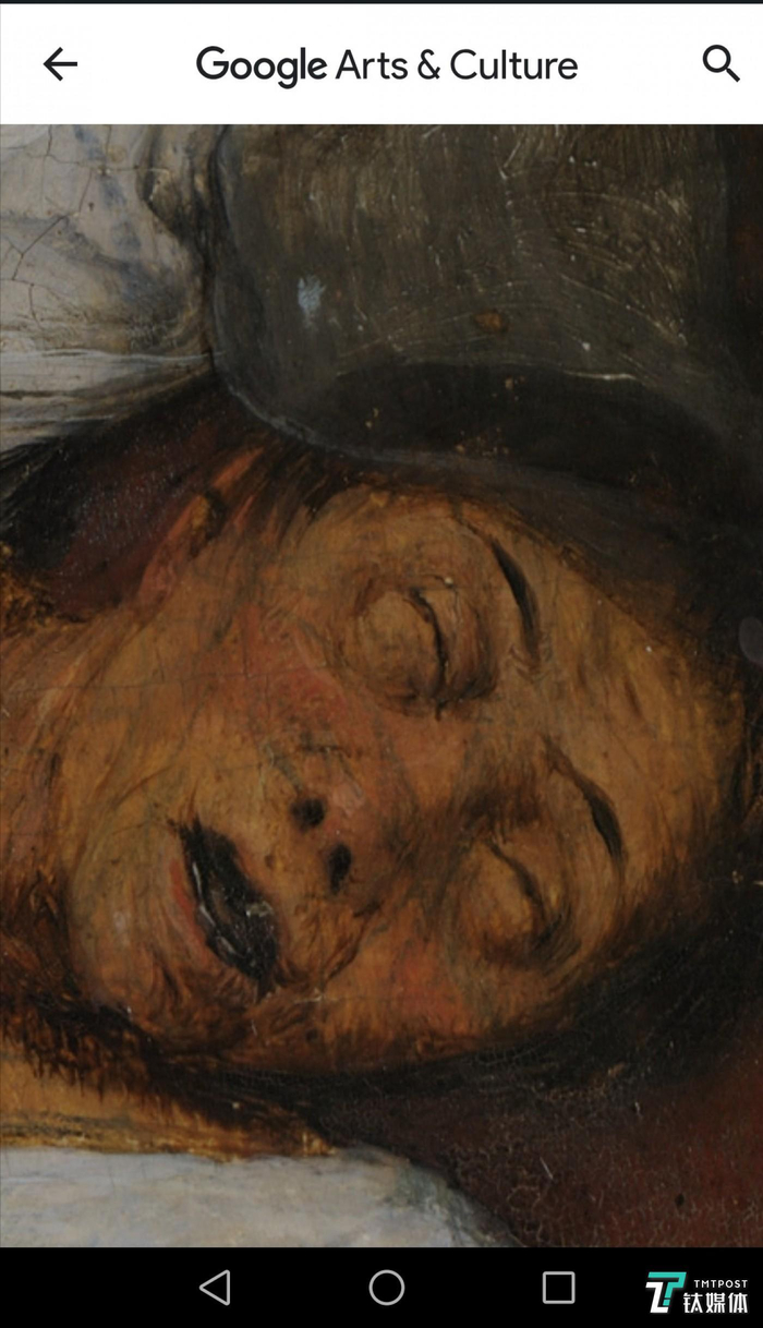 虽然 Zoom Views 无法像VR游览和线下参观一样,带给用户艺术品与展览空间之间的“整体感”,但弥补了实体博物馆匮乏的局部细节体验。这种震撼效果,甚至会让人呼吸急促,让作品给人带来身临其境的现场感,与画面中的人物与景致产生强烈的共振。