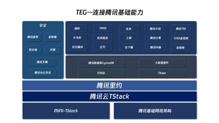 腾讯技术工程事业群(TEG)是腾讯内部的技术支撑平台,为公司提供全方位的运营解决方案和服务支持。运营着亚洲最大的网络、服务器集群和数据中心,拥有业内领先的基础架构云运营平台,云数据处理平台、互联网海量应用支撑平台,为亿级用户提供云计费服务和安全保障。TEG的各项技术应用于微信、QQ、天天快报等上百个腾讯产品,和云、广告、游戏等业务有着密切的合作。