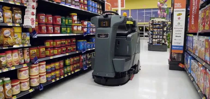 除了AI系统,沃尔玛也在商店里配备了将近4000个机器人,分布在各地不同的商店。这些机器人包括1500个地板清洁机器人;300个扫描货架机器人,确保商品摆放的位置是否正确;1200个扫描和分拣卡车货物的机器人;900个拣货机器人,用于消费者提取在线购买的商品。