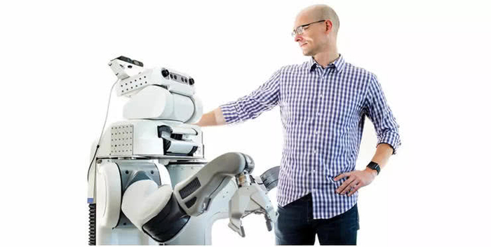 雷锋网注:上图为 Brett 机器人及其开发者Pieter Abbeel