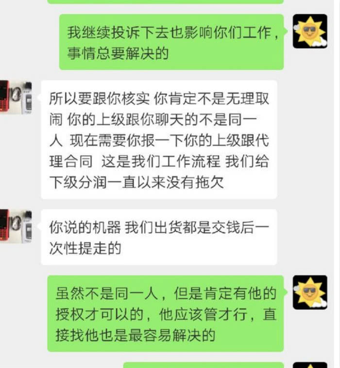 根据《华夏时报》记者调查,在被投诉有问题的POS机中,有相当一部分的POS机并非从官方渠道购买。从聊天记录截图中可以看出,张先生是通过微信朋友圈购买的瑞银信POS机,非正规渠道购买的POS机,很多会存在跳码等问题,有一定的风险。
