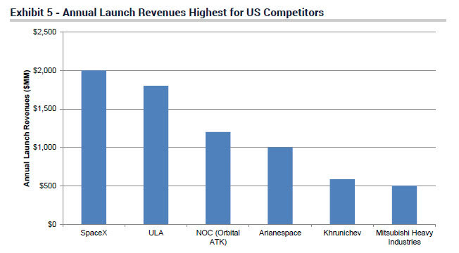 按照马斯克的最新说法:「全球互联网连接收入总额(每年)约为 1 万亿美元,我们认为 SpaceX 可以获得其中的 3%(300 亿美元),或者 5%。」他同时还透露,未来 SpaceX 的商业发射收入将达到 30 亿美元,作为对比,全球著名投行 Jefferies 的最新报告显示,SpaceX 在 2018 财年的总业务收入为 20 亿美元。