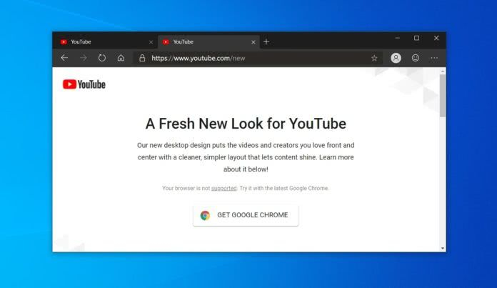 YouTube的新设计不再适用于微软 Chromium Edge浏览器