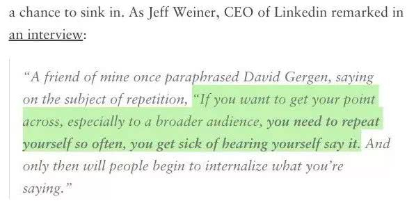 唯一能有如此生命力的思想是那些能给人留下足够印记的,而用寥寥数语将自己的思想包装成令人难忘的记忆,一直都是贝佐斯的优势。