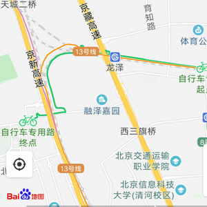 “北京首条自行车专用道”东起回龙观,西到软件园,全长约6.5公里,限速15公里\/小时。百度地图也第一时间展开采集工作,不仅利用专业的采集设备,对整条高速道路进行数据采集,还通过专业的数据加工能力,呈现出直观人性化的视觉效果和准确便捷的骑行指引。