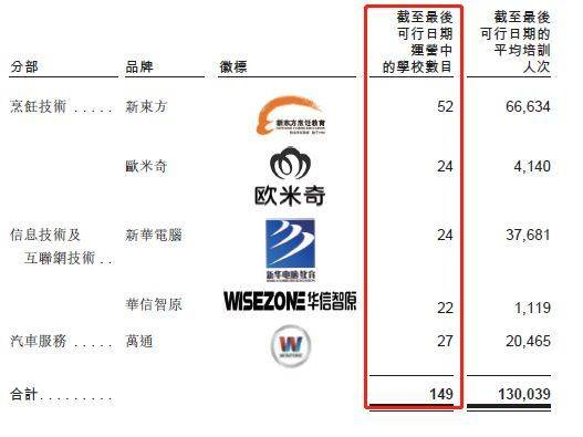 截止2018年底,东方教育共有149所学校正在运营。
