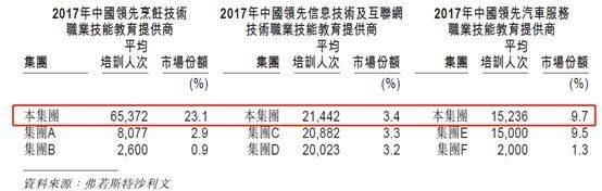 在2017年底,就培训人次而言,东方教育是整个中国最大的职业技能教育提供商,共占市场总额的2.5%。第二、第三名则为0.5%及0.3%。