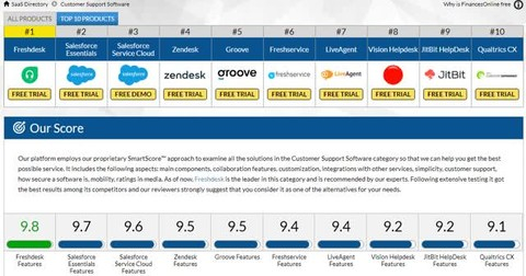 通过对FinancesOnline生产的客户支持软件进行比较,我们不仅发现了Zendesk的众多竞争对手,还发现ZEN的产品在同行中仅名列第四。(同样,Fitsmallbusiness给Freshdesk的评级也高于Zendesk。)