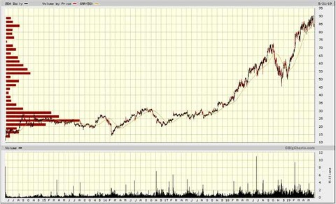 自2014年IPO以来,Zendesk (ZEN)的运营非常出色,SaaS领域的许多公司也是如此。下图显示了它的飞速增长,包括过去两年股价的大幅上涨。