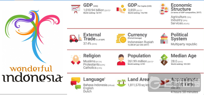 目前,印尼的 GDP 位列全球第 16,在 2030 年将达到世界第四,仅次于中美印三个国家。印尼是一个宗教国家,非常尊重宗教礼仪。另外最重要的是,印尼有 2.7 亿人口。首都雅加达是人口最多的城市, GDP 占全国的 30%,同时它也是世界上最堵的城市。