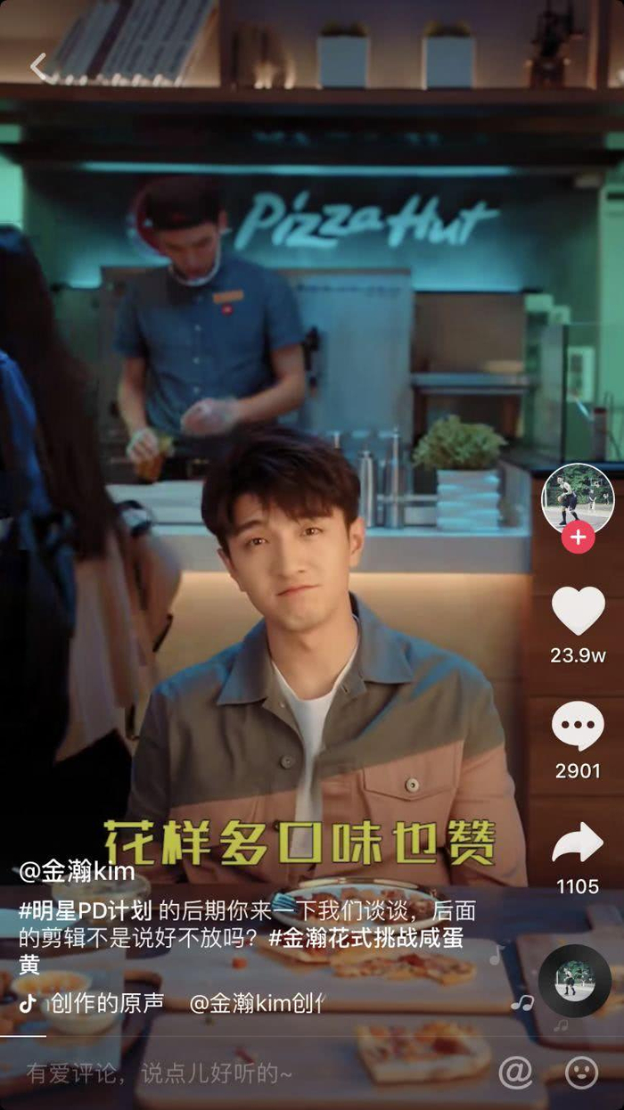 将视线投向抖音明星PD计划,其所发布的视频内容同样多样化,包括明星艺人vlog、探店、美妆、健身经验分享等。更重要的是这些内容实现了悠闲娱乐与商业性的强勾连,部分明星还参与了品牌活动的推广,例如乔振宇与品牌的合作、金瀚与必胜客的合作等。