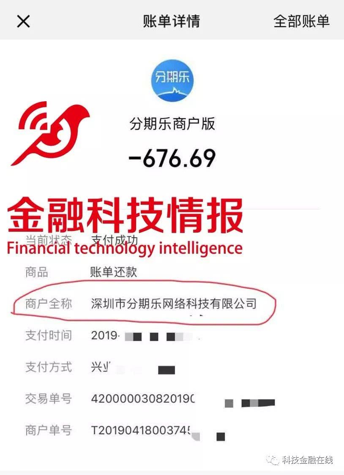 然而,曾有在校大学生向金融科技情报戴贤超出示了其在分期乐借款后,还款的账户却是深圳市分期乐网络科技有限公司。也就是说,作为第三方,分期乐明显违背了141号文中关于第三方合作机构不得向借款人收取息费的规定。