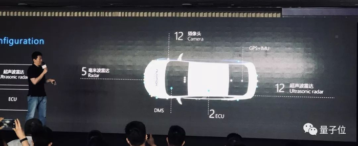 传感器方案方面,全车搭载12个摄像头、5个毫米波雷达、12个超声波雷达,以及DMS和GPS+IMU。