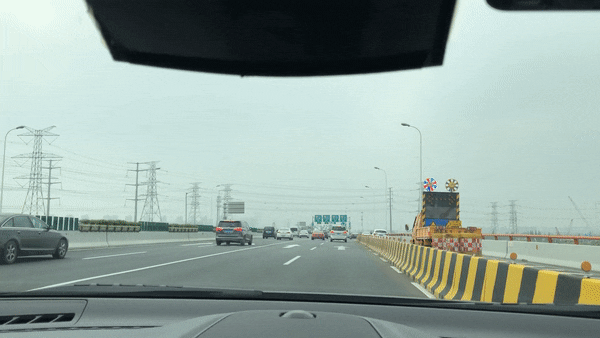 在驶上环路后,司机启动自动驾驶,即可交由机器司机代驾,压着限速稳步前行。
