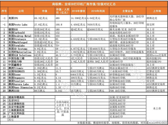 70%亏损 全球20家3D打印机厂商市值\/估值对比 有泡沫吗?