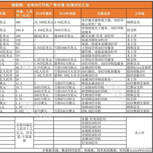 △南极熊:全球20家3D打印机厂商市值\/估值对比