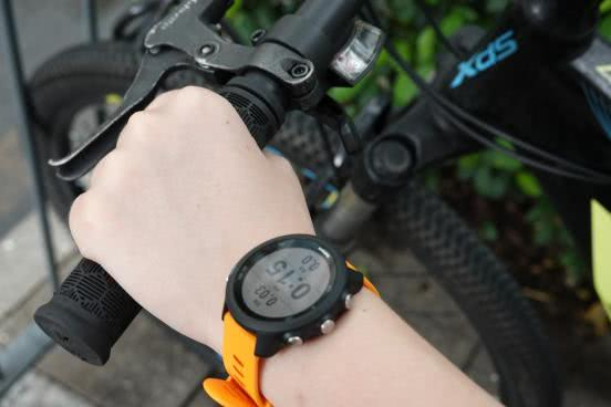 手表的正面其实是1.2英寸圆形半透反射式彩色显示屏,有一点比较不错的是,在白天进行户外运动时,即使阳光很强,屏幕上的内容也能清晰可见。表圈一周的按键布局看起来就很“佳明”,搭配了 5个功能按键,跟圆形表盘整体也比较契合。外观也只有从这里才能感受到它的确是一款运动手表,否则加上我选的活力橙的配色表带,感觉更像一款年轻化的时尚智能手表。