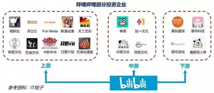 这是B站的一个重要节点。在这前后,B站越来越多地扮演互联网行业并购事件中的投资方,70多起公开投资,从虚拟偶像、声音社区、动画制作公司、内容平台到游戏公司、线下展会、衍生品,遍布ACG产业链,一方“帝国”正在搭建起来。